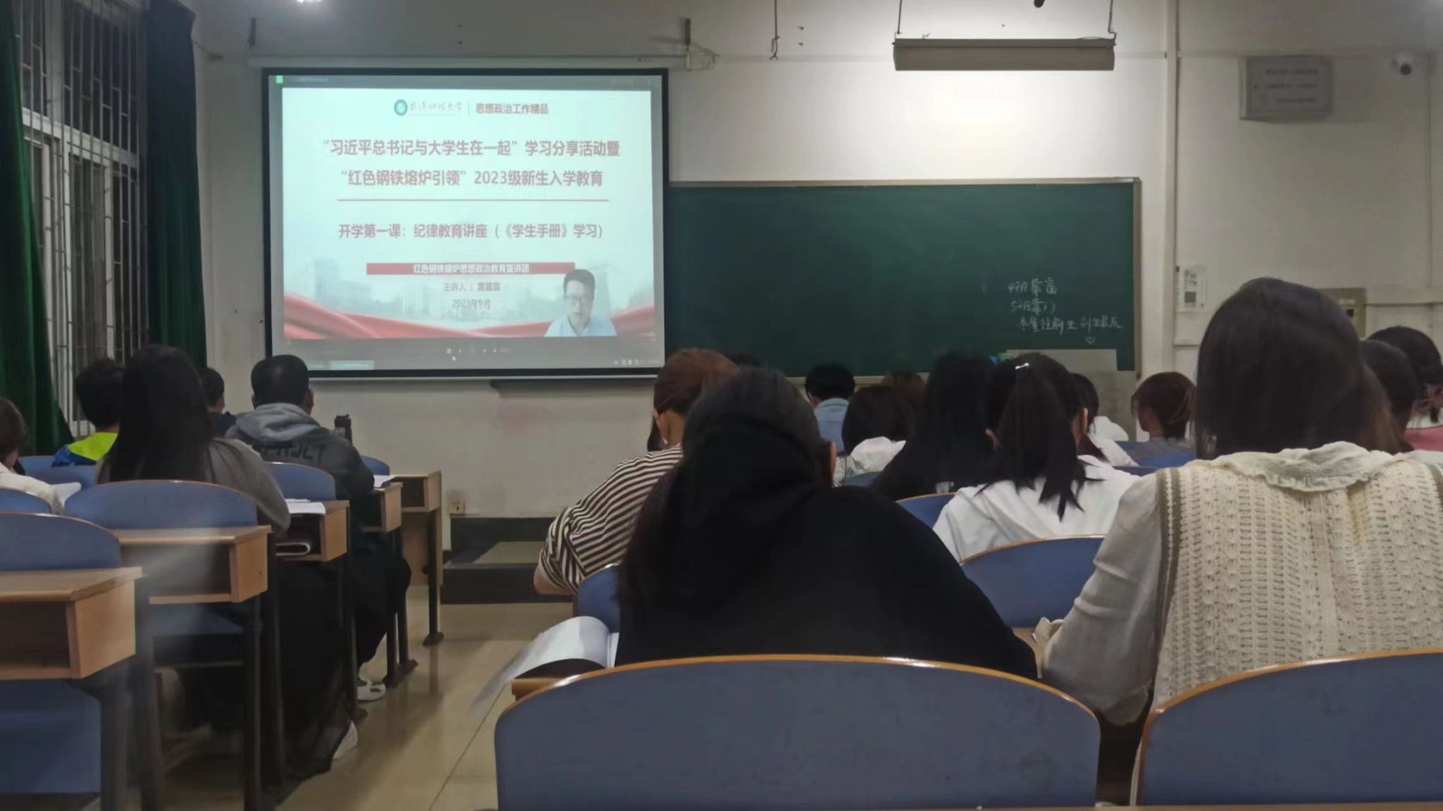 各班级集中观看了我校“红色钢铁熔炉”思想政治教育宣讲团成员雷霆霆录制的宣讲视频《开学第一课:纪律教育讲座》。雷霆霆重点讲解了《武汉科技大学学生违纪处理办法(试行)》,详细介绍了处分的种类和运用、违纪行为与处分等内容,他告诫同学们严格遵守校纪校规,切勿出现旷课、考试违纪、夜不归宿、打架等不良行为。