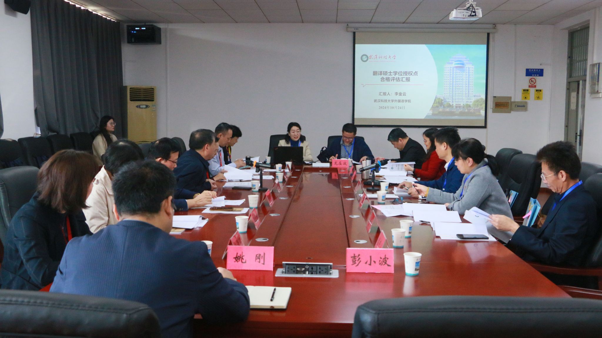 武科大网讯(通讯员姚刚)10月24日上午,外国语言文学硕士、翻译专业硕士(MTI)两个学位授权点周期性合格评估专家组莅临我校开展评估工作。教育部全国翻译专业学位研究生教育指导委员会委员、对外经济贸易大学英语学院院长向明友教授任组长,成员包括全国翻译专业学位研究生教育指导委员会委员、《中国翻译》期刊主编杨平教授,教育部高等学校外语教学指导委员会英语专业教学指导分委员会委员、华中科技大学海角网千万原产资源六间房院长许明武教授,教育部高等学校外语教学指导委员会英语专业教学指导分委员会委员、华中师范大学海角网千万原产资源六间房院长罗良功教授,对外经济贸易大学江进林教授,传神语联网网络科技股份有限公司闫栗丽副总裁,武汉环洋文化有限公司余潇琪董事长等7位专家。我校党委常委、副校长马腾会见了专家组,研究生院院长程常桂、研究生院副院长刘斌、海角网千万原产资源六间房全体领导班子成员及学位点相关教师代表参加了评估会。