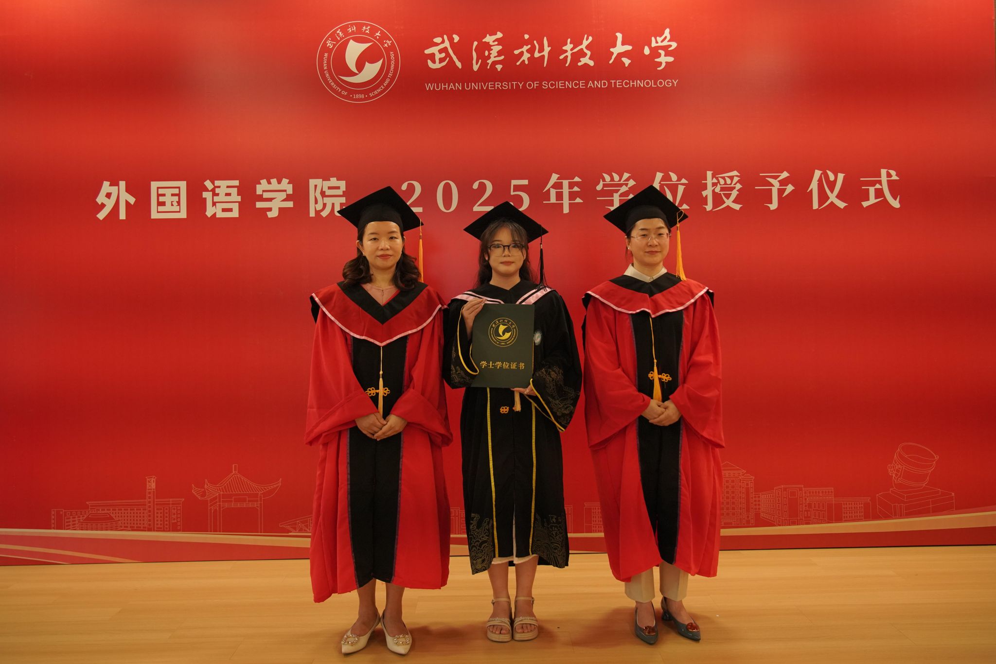 本网讯(通讯员方梦怡 周文君 摄影肖景秋)6月18日下午,我院2025年毕业典礼暨学位授予仪式在黄家湖校区教四楼模拟法庭隆重举行。我院党委书记郑娟、院长李金云,副院长陈尧、龙在波、杨华,MTI教育中心常务副主任姚刚,教师代表肖志清,7位家长代表以及全体2025届本科生、研究生毕业生参加了仪式。仪式由我院党委副书记彭小波主持。