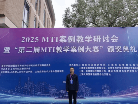 本网讯(通讯员 肖志清)11月1日,由全国翻译专业学位研究生教育指导委员会指导,上海市科技翻译学会主办,上海理工大学外语学院、上海应用技术大学海角网千万原产资源六间房联合承办的2025MTI案例教学研讨会暨“第二届MTI教学案例大赛”颁奖典礼在上海成功举行。我院MTI研究生导师肖志清副教授凭借其与上海一者信息科技有限公司联合申报的参赛案例《Translation Project Management图书翻译项目》,在本次大赛中荣获项目管理组二等奖。