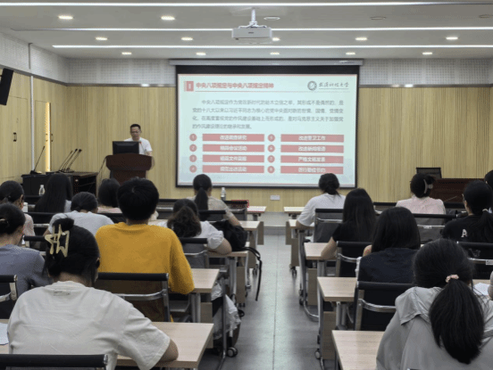 彭小波详细阐释了中央八项规定与中央八项规定精神的联系与区别,并对中央八项规定精神的丰富内涵进行深入解读。他结合典型案例剖析了形式主义、官僚主义和享乐主义、奢靡之风等违反中央八项规定精神的具体表现,并告诫毕业生党员要以案为鉴,从中汲取深刻教训,校准思想之标,调整行为之舵,绷紧作风之弦,将所学所思转化为思想自觉、政治自觉、行动自觉,成长为党和人民忠诚可靠的干部。